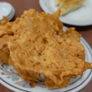 お目当ての店が3ヶ月待ちだったけど、別の町中華を発見。ここの名物がこれ、薄い豚肉をカリっと揚げてむちゃ美味しい。