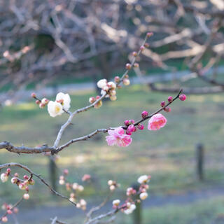 咲き分ける珍しい梅ですが、名前もいいですね。