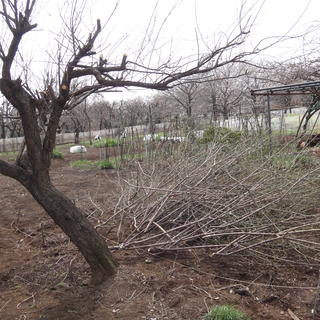 おかげで大量の上向きの枝が出ていて、梅が咲くときは梅の花っぽくなく桜のように花で木が埋め尽くされるぐらい咲いてかえって綺麗なのですが、あまり咲きすぎるのも木にもよくないので一気に伐採。来年は梅っぽい木になるかな。