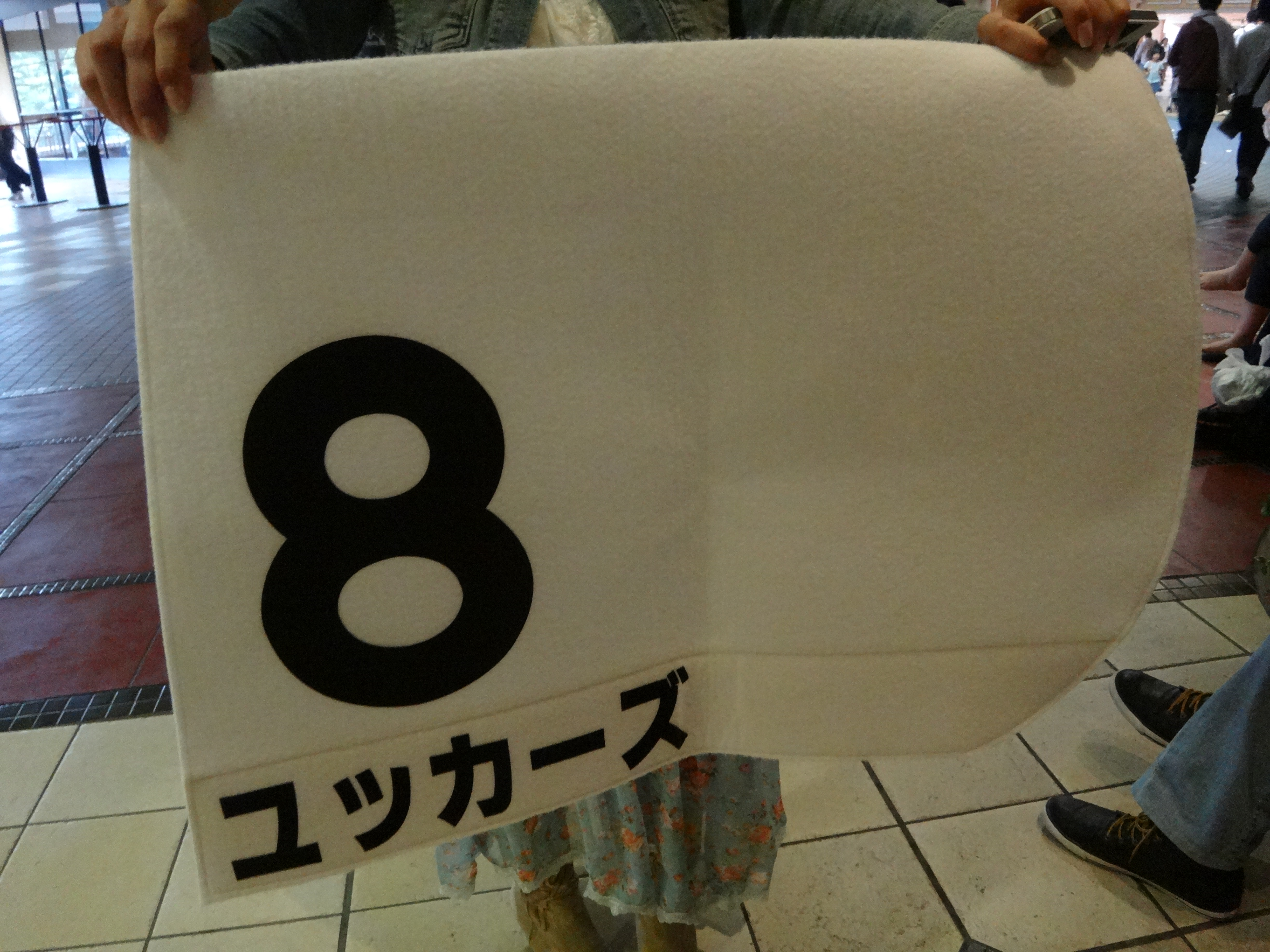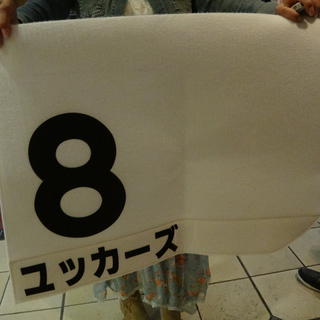 ダービー仕様のゼッケン、白地に金刺繍で作られているG1で唯一の白ゼッケンです。