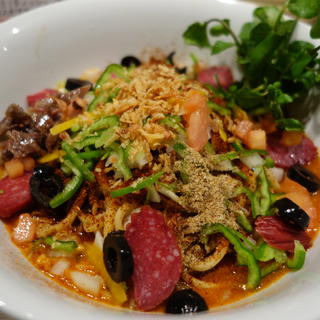 定番のピザソバ、鉄板の美味さです。見た目も綺麗なのがこのお店のこだわりというか特徴ですね。
