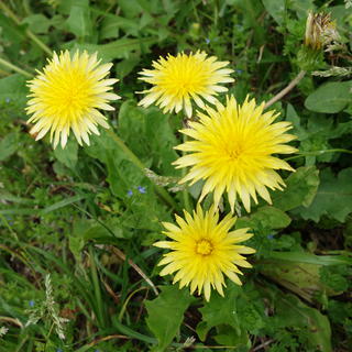 毎年恒例の実家の畑仕事。この時期は近くの史跡公園でカントウタンポポの群生を見ることができます。これは珍しい花びらが尖っている株です。