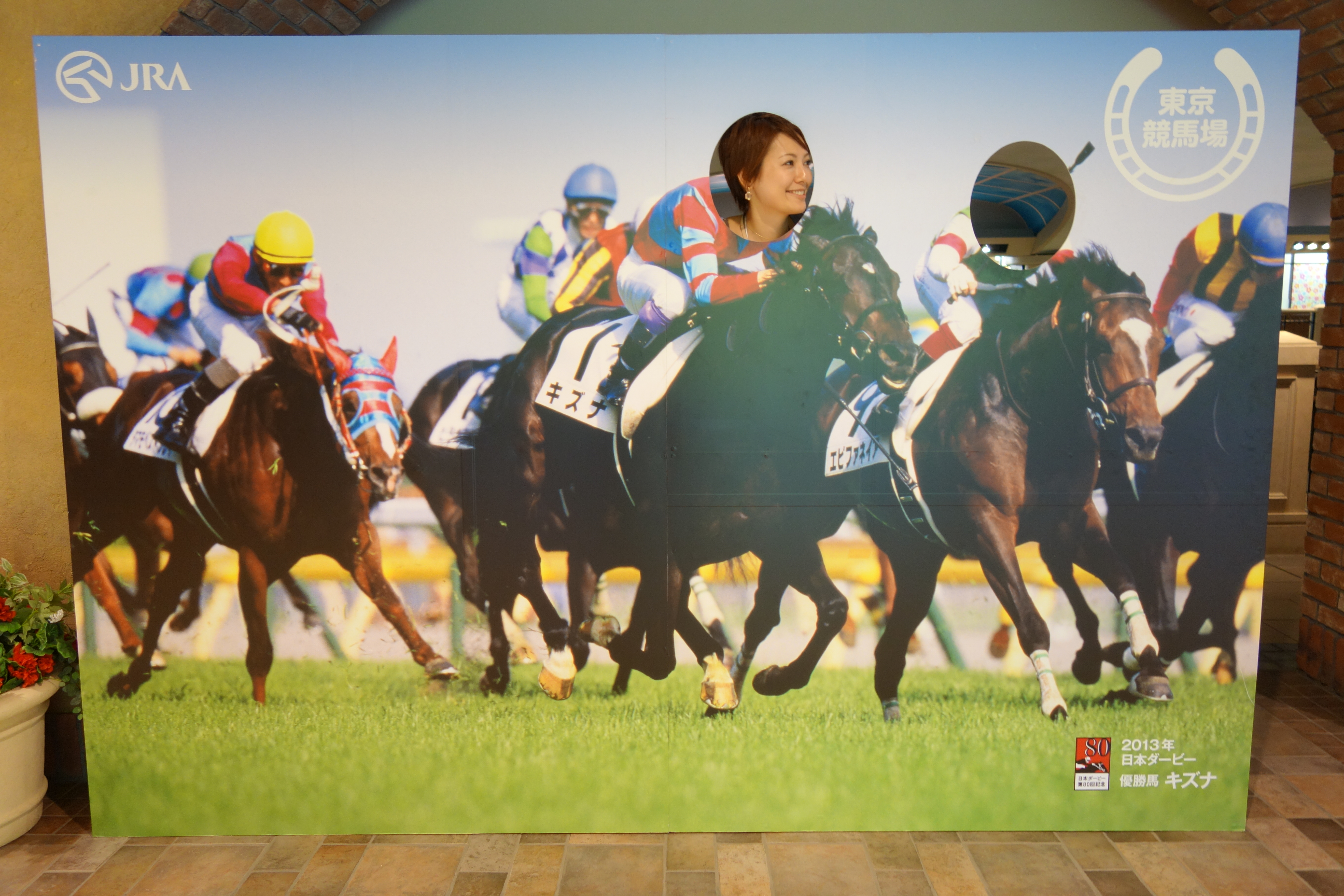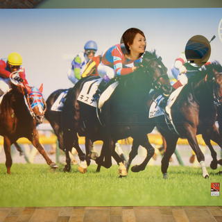 競馬場に出来た新しいパネル、ちょっと顔の方向が難しいです。