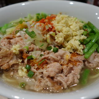 長いメニュー 今日のメニューの名前は「春キャベツとこまぎれ豚の中華そば しょうがをのせて 少々辛め」という長めのメニュー。 緑の野菜はクレソンの茎、最近のこのお店のお気に入りの具材です。 前の記事 次の記事