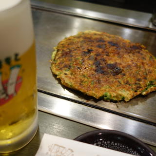 大阪遠征の定番、ネギ焼き屋さんです。メニューも定番の牛すじネギ焼き。