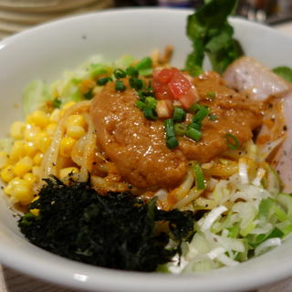 今日は冷やし味噌混ぜそば。コーンが味噌と合うのは定番。でも、他にはない、これも唯一無二の味。