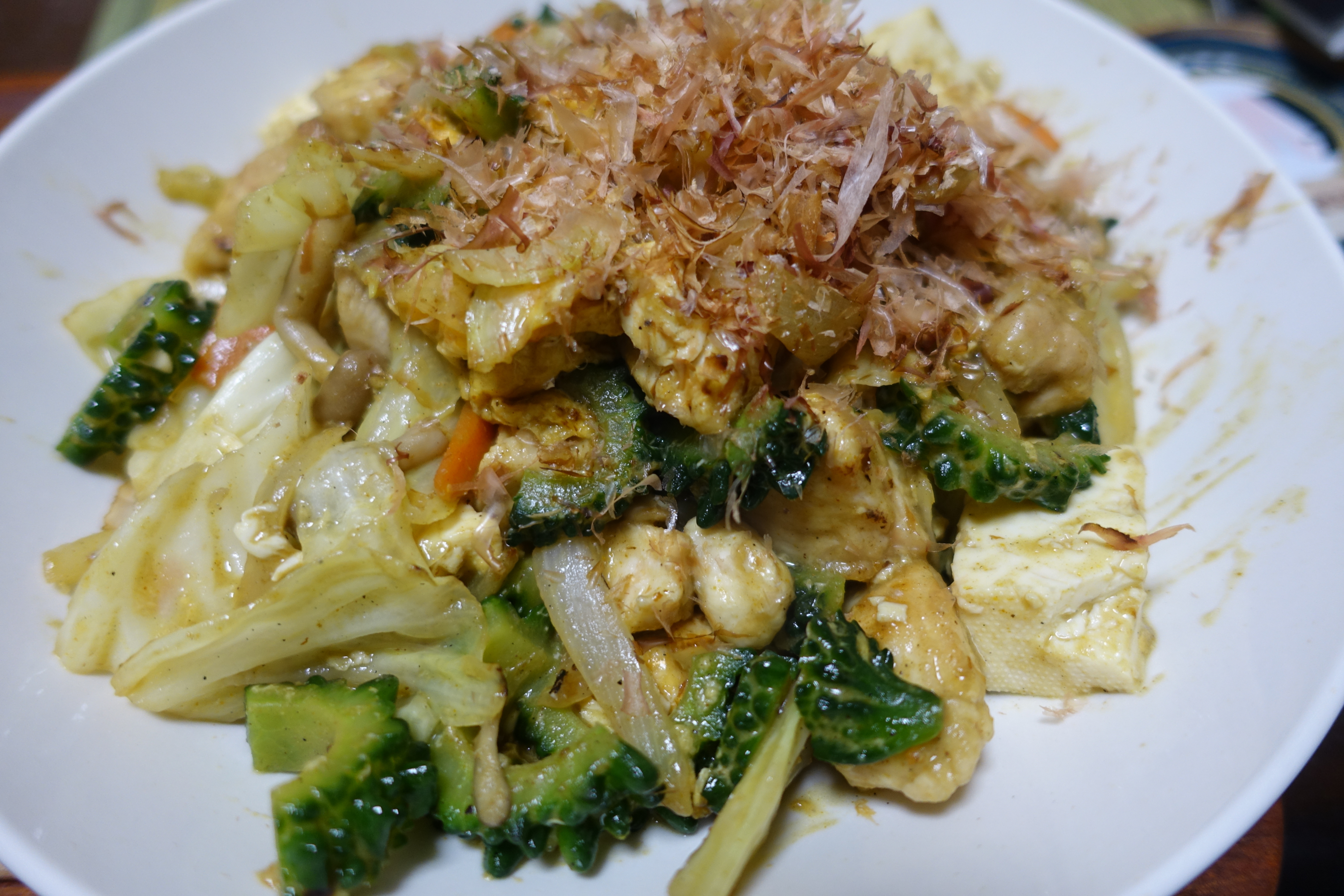 最初にゴーヤが採れたらまずやるのはこれ。スパムは豚肉ですが、それ以外は割と本場に近いバージョン。