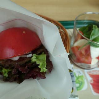 限定1店舗限り、限定時間に限定数量のハンバーガー(?)いただきました。さっぱりしててハンバーガー感があんまりないですが、トマト感はたっぷり。