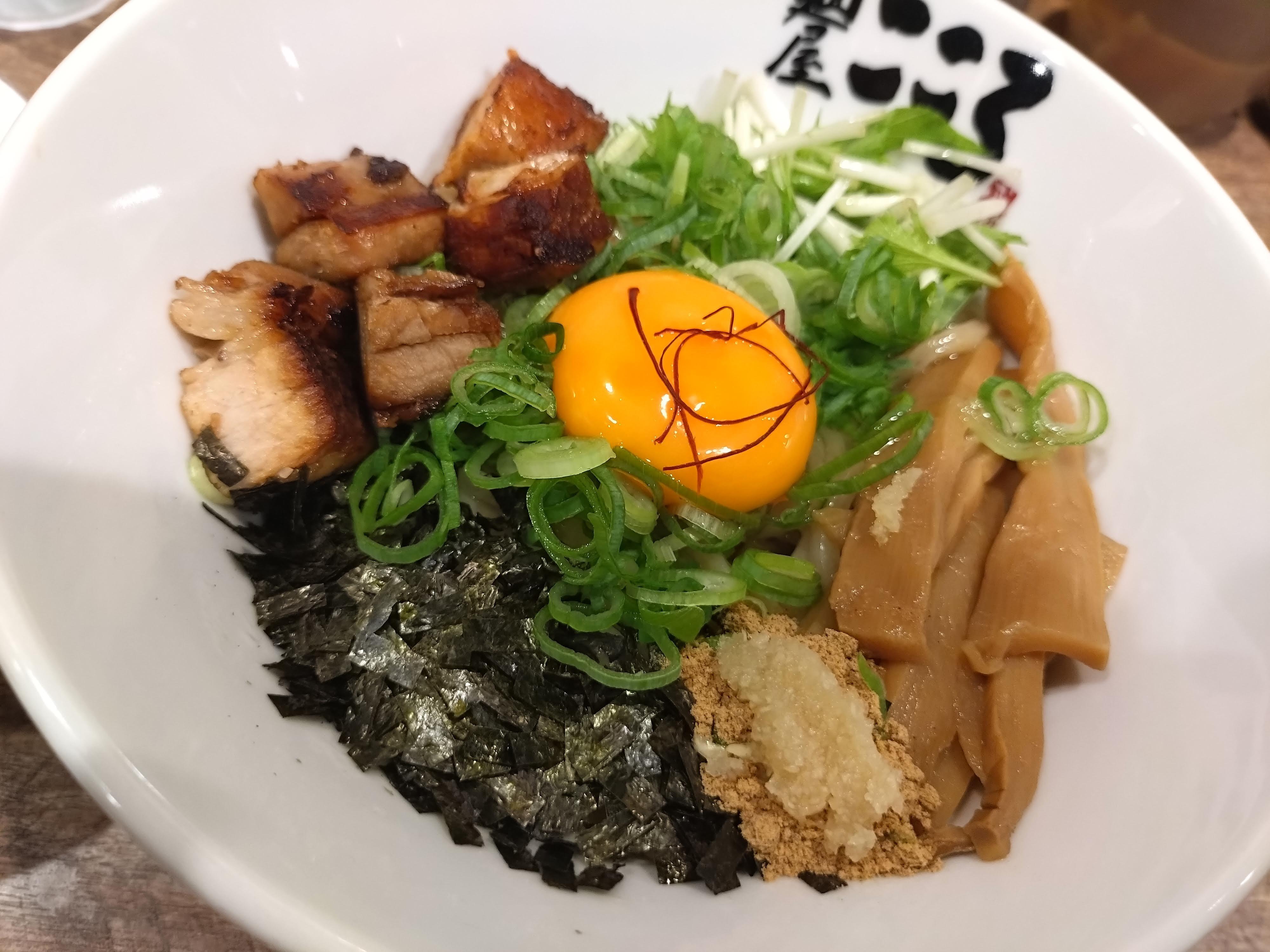 当然写真展中のご飯のロケハンも。これは人気のつけ麺のお店のまぜそば。